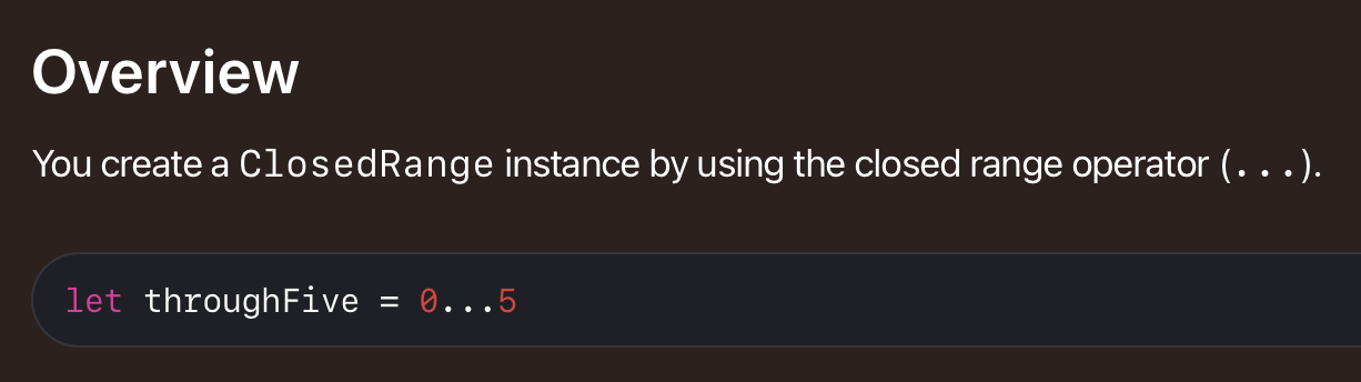 ClosedRange 타입은 Strideable 프로토콜을 준수하는 Interger 타입이므로 for-in 루프나 시퀀스 메서드에 사용가능하다.