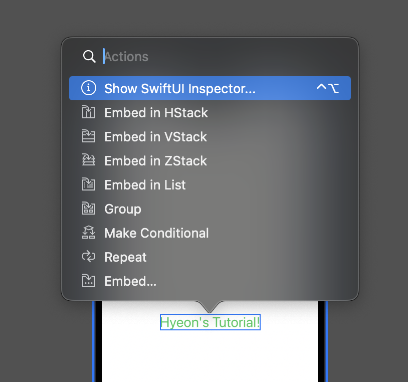contorl + option 을 누른채로 원하는 컴포넌트를 코드에서 탭하면 똑같이 이런창이 뜹니다!