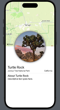 1. 방금 만들어뒀던 MapView와 이전에 만들어뒀던 Custom ImageView 를 VStack으로 추가합니다.